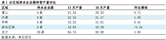 11月热镀锌管样本企业产量环比10月增幅2.23%