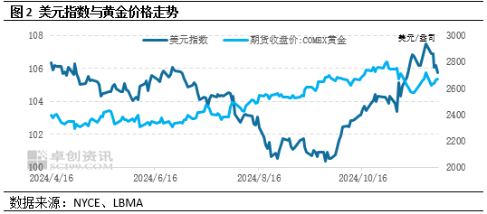 2.美债规模:黄金除了是商品以外,也是无孳息资产,也是投资配置的必选资产。因此,从全球相对长期美债所反映出的无风险利率而言,黄金则是其相对利息成本的最佳参照。如果美债规模扩张,那么付息成本则随之走高,对应的黄金隐含成本也将增加,价格上涨;反之则下跌。当下,多数人认为未来美国新总统的保护主义政策理念将进一步推高美债规模甚至突破40万亿美元,这对于黄金而言也是继续推动其价格上涨的动力。