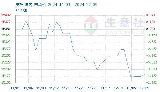 上周棉价偏弱震荡,据生意社商品行情分析系统,截至12月9日3128B级皮棉现货价格在15176元/吨,周跌幅为0.65%。期货方面,主力大幅减仓,上周五完成换月。截至9日,郑棉主力合约结算价在13765元/吨,周跌幅为1.82%。