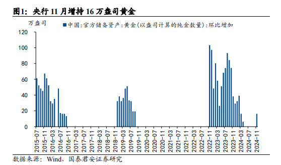 我国央行近日重启黄金购买,11月黄金储备增加16万盎司,至7280万盎司,显示稳汇率意图。国泰君安分析师韩朝辉认为,在美联储降息通道开启和亚洲货币走势分化的背景下,黄金市场行情催生可能性低,后续走势以震荡为主。
