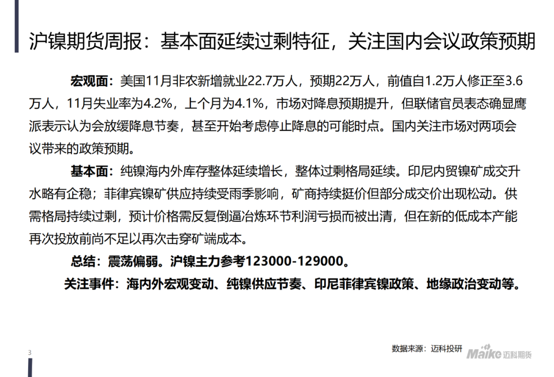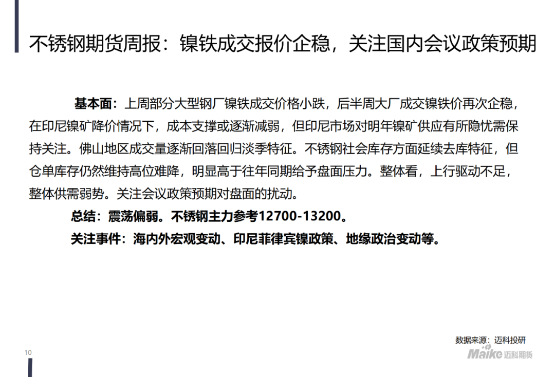 【迈科镍&不锈钢周报】基本面维持过剩特征,关注国内会议政策