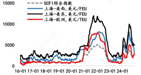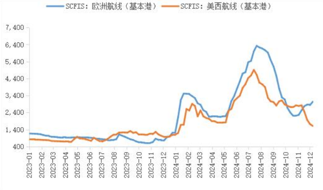 (3)目前逐步进入第51周的揽货时间窗口,当周运力偏低为24.2wTEU(12月内最低水平),马士基二降华北至大柜4400美金后揽货情况中性,关注其他船司是否会进一步向更理性的中枢靠拢,约大柜5000美金,实现12月下旬的实质性稳价提涨,尽管涨幅极其微弱。
