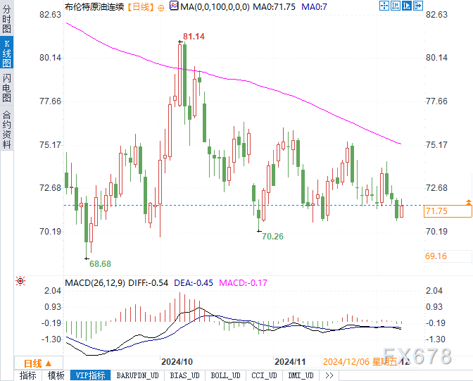 汇通财经APP讯——周一(12月9日),全球市场迎来多个重磅事件影响,原油价格、贵金属价格以及主要货币和债市均表现出一定波动。布伦特原油连续合约上涨1.04%,报71.77美元/桶,美原油连续合约上涨1.09%,至67.94美元/桶。现货黄金升至2655.87美元/盎司,涨幅0.87%。美元指数则小幅下跌0.12%,报105.8429。市场关注焦点集中于中国宽松货币政策信号、中东地缘政治变动以及本周即将公布的美国通胀数据。