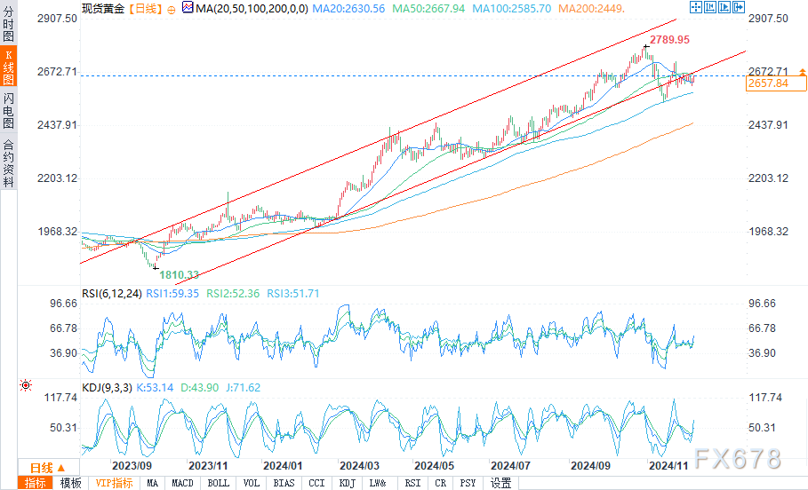 从下行来看,跌破2600关口可能会延长黄金在美国大选后的跌势,回到2540,RSI重新测试了2024年2月的水平,进一步下行风险指向2520,2480的支撑位,更极端的情况是2300。