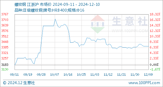 12月10日生意社螺纹钢基准价为3400.71元/吨