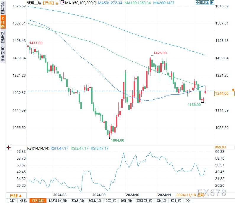 玻璃市场表现强劲,价格上涨4.67%,成为本次市场中的领涨品种之一。得益于地产政策改善预期,玻璃需求短期内得到支撑,同时生产端未见明显扩张迹象,库存维持低位。政策推动下的消费回暖对玻璃市场形成利好,但长期来看仍需关注地产政策的实际落地效果及其对需求的持续性影响。