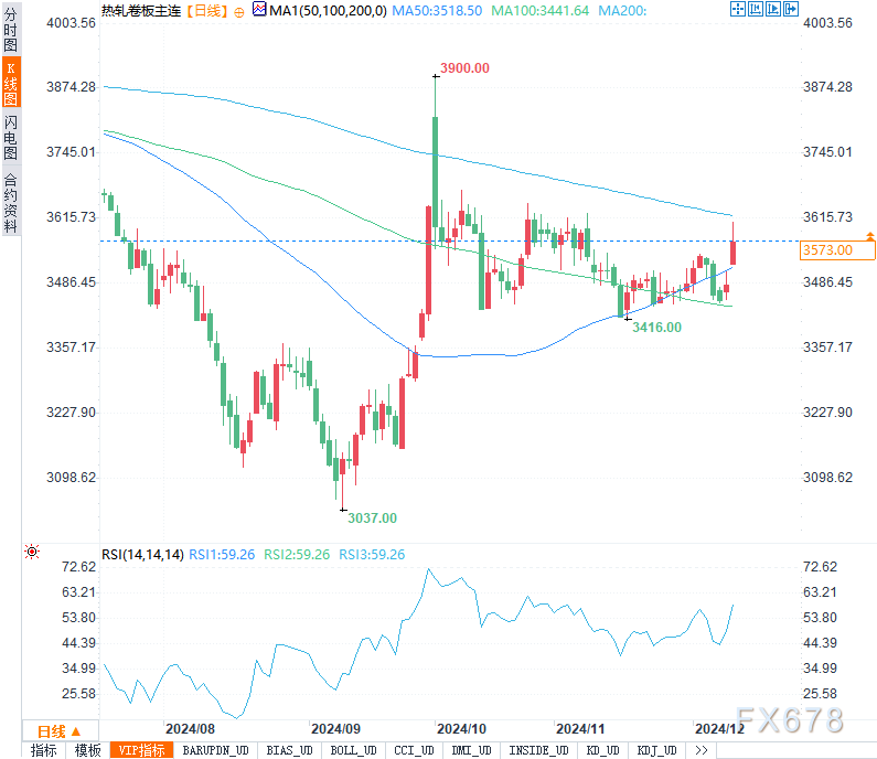 汇通财经APP讯——周二(12月10日),市场在宏观政策刺激和国际局势变化的双重影响下,呈现出多品种普涨的态势。昨夜中央政治局会议释放出“适度宽松”的货币政策信号,并提出稳定经济、促进消费等积极政策方向,对国内商品市场形成显著提振。与此同时,叙利亚政局变化与美国通胀预期上升,进一步推动了全球商品市场的波动。以下将对螺纹钢、PVC、豆粕、玻璃、沪银、纯碱、热卷、PTA、棕榈油和玉米的走势展开详细分析。