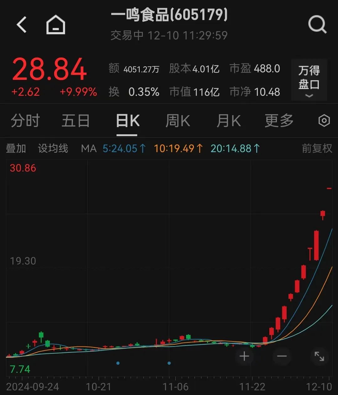 大消费板块无疑是今早最耀眼的板块。餐饮旅游、零售、食品板块领涨,一鸣食品11连板。