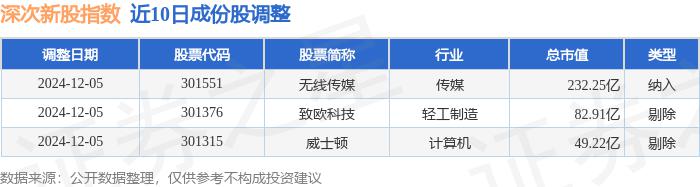 近10日内深次新股(399678)指数成份股做了调整,新纳入了1只股票,剔除了2只股票。