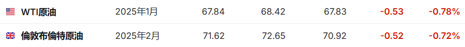 3. 截至发稿,WTI原油跌0.78%,报67.84美元/桶。布伦特原油跌0.72%,报71.62美元/桶。
