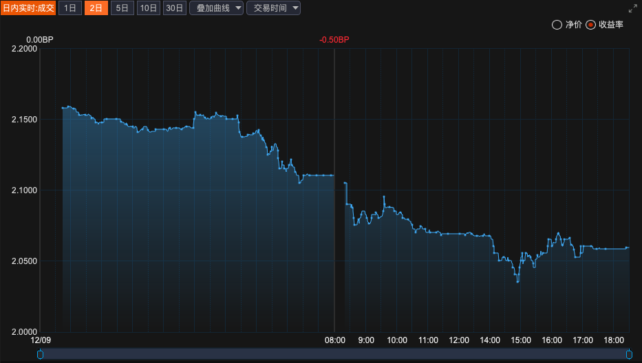 昨天下午,债市已经出现明显反应。10年期国债“24附息国债11”到期收益率一度从接近1.95%的位置下行至1.905%位置收盘。