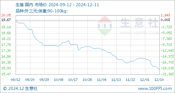 12月11日生意社生猪基准价为15.85元/公斤