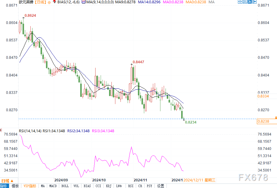 12月11日周三欧洲早盘时段,欧元/英镑徘徊在0.8240附近,表现疲软。市场对欧洲央行在12月会议上再次降息的预期升温,继续削弱欧元/英镑的支撑。