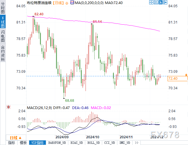 汇通财经APP讯——国际油价周三(12月11日)继续温和上涨,布伦特原油连续合约现报72.37美元/桶,日内涨幅0.48%;WTI原油连续合约交投于68.79美元/桶,日内上涨0.29%。市场对全球最大原油进口国中国的需求前景重拾乐观情绪,中国近日宣布的宽松货币政策成为提振油价的主要动力。然而,在供应和库存压力犹存的背景下,原油价格走势仍面临多重考验。