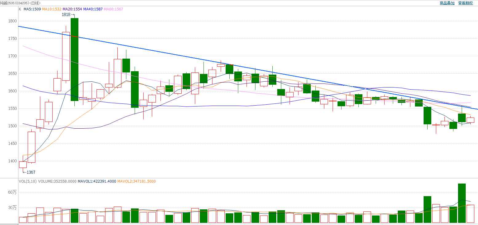 操作策略:多螺纹空焦炭05为跨品种套利策略,可适当关注。若差价下破1400取消关注。