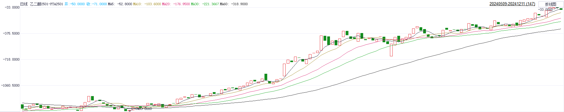 操作策略:多乙二醇空PTA 01跨品种套利策略,可适当关注。若差价下破-286则取消关注。
