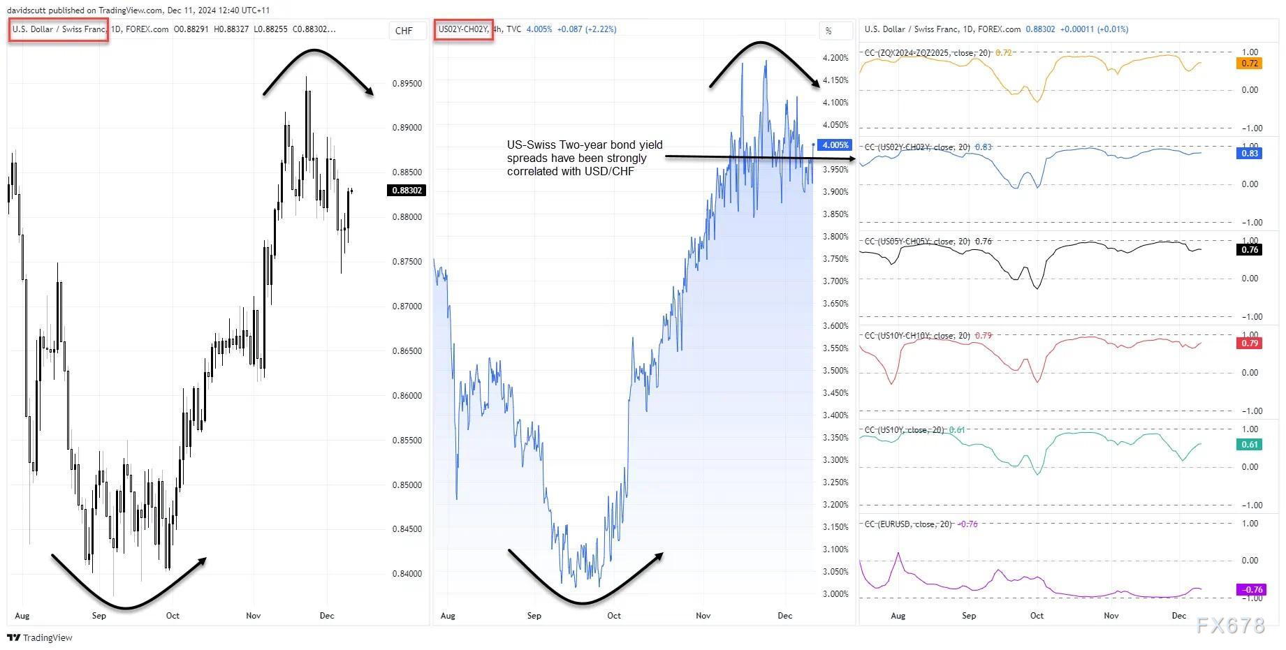 如果这种关系得以维持,无论美元/瑞郎在美国通胀报告和瑞士央行决定后如何结束,美国和瑞士之间的相对短期利率差异可能为美元/瑞郎的未来方向风险提供线索。