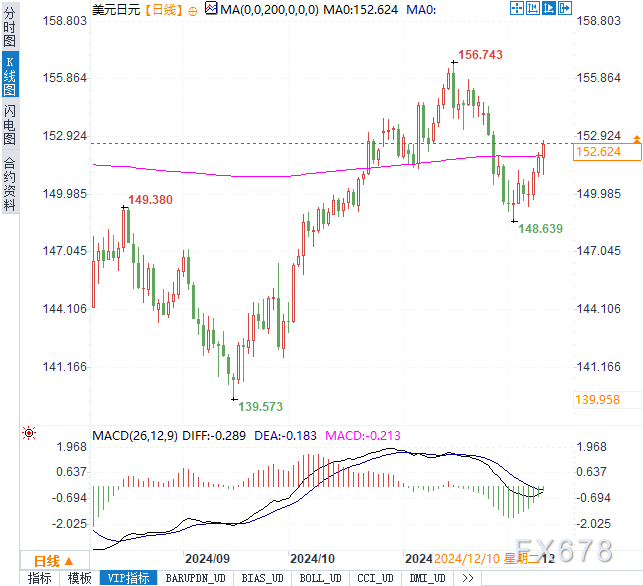 日元走势相对坚挺,受日本批发通胀加速影响,日本央行12月加息预期升温。美元兑日元上涨0.44%,至152.626,但市场关注是否会有更多支撑加息的信号。