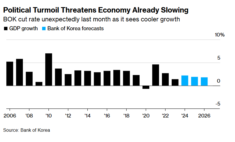 政治动荡威胁到已经放缓的韩国经济——由于认为经济增长放缓,韩国央行上月意外降息