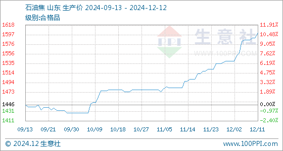12月12日,生意社石油焦基准价为1601.00元/吨,与本月初(1540.25元/吨)相比,上涨了3.94%。