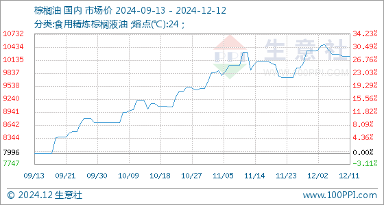 12月12日生意社棕榈油基准价为10220.00元/吨