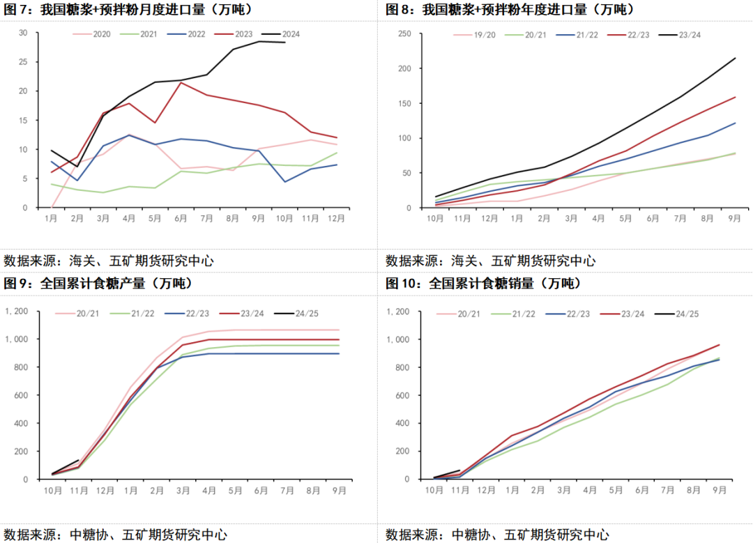 11月底,市场传出海关总署要求对中国出口的泰国食糖生产商进行安全评估,因其仍存在系统性食品安全风险。我方要求泰国监管机构进行严格的食品安全监督,并暂时暂停相关制造商向中国出口。受该消息影响,郑糖主力合约从5800元/吨附近反弹至6000元/吨上方。泰国的糖制品主要指的是糖浆和预拌粉。由于糖浆和预拌粉进口成本低,叠加市场逐步适应其作为生产原料,近年来进口量突飞猛进,如果不出现调控,未来进口量将会进一步增加。虽然行业一直在推动政府出台政策进行管控,但一直未能实现。据海关总署数据,2024年1-9月份累计进口173.26万吨,同比增长33.04万吨,增幅23.57%。2023/24榨季我国累计进口糖浆、白砂糖预混粉214.79万吨,同比增加56.18万吨,增幅35.42%。其中,糖浆进口145.92万吨,同比增加36.01万吨;白砂糖预混粉66.46万吨,同比增加20.57万吨。二者以67%和88%含糖率分别计算,合计折白砂糖量约为156.26万吨。据渠道消息了解到,上述消息泰国食糖生产商确实收到通知说安全检查和进口商备案,但是对此影响都不太担心。因为管控糖浆和预拌粉进口关键在于关税或者强制性禁止等行政措施,条文并非禁止进口,又并未提高关税,只是督促提高安全规范性。
