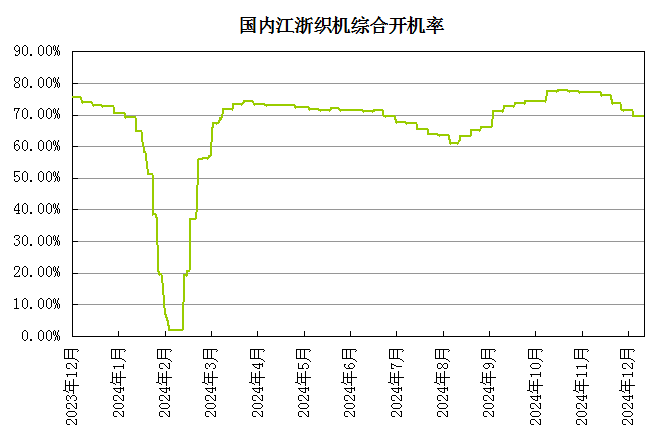 下游纺织终端防寒面料成交气氛尚可,部分春季订单询单氛围较好,中间商及贸易商仅按需备货,内外贸订单处交付尾声。截至12月11日江浙地区化纤织造综合开工率不足70%。目前工厂库存及资金压力增加,新订单衔接不畅,织造厂商对后市预期谨慎偏弱,织造行业开工仍有下降预期。随着消费淡季影响,预计纱线市场成交气氛将进一步偏弱,需求存在弱化预期。