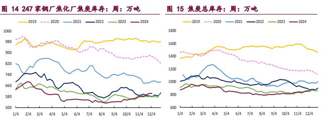 产业端,现阶段钢厂利润缓慢走缩,截至 12 月 6 日当周,全国 247 家钢厂盈利率为 49.78%,周环比下降 2.17 个百分点,显示仍有接近一般钢厂维持盈利状况,在此背景下焦炭下游需求表现出一定韧性。根据钢联统计,最新一期全样本焦化厂焦炭日均产量为 113.75 万吨,周环比小幅增加 0.25 万吨;全国 247 家钢厂铁水日均产量 232.61 万吨,周环比小幅下降 1.26 万吨。