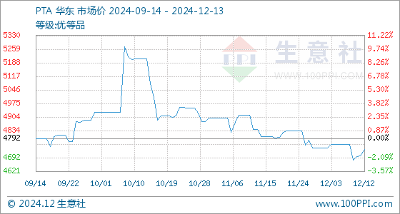 12月13日生意社PTA基准价为4734.00元/吨