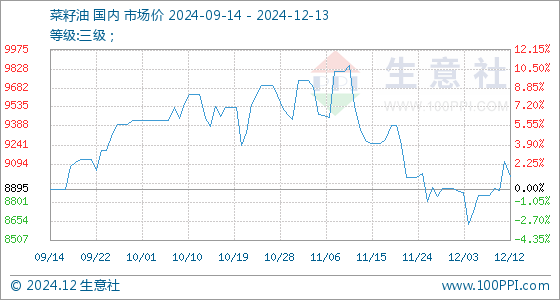 12月13日生意社菜籽油基准价为9001.67元/吨