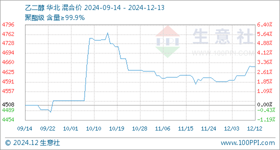 12月13日生意社乙二醇基准价为4646.67元/吨