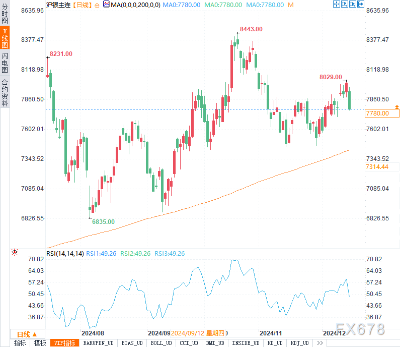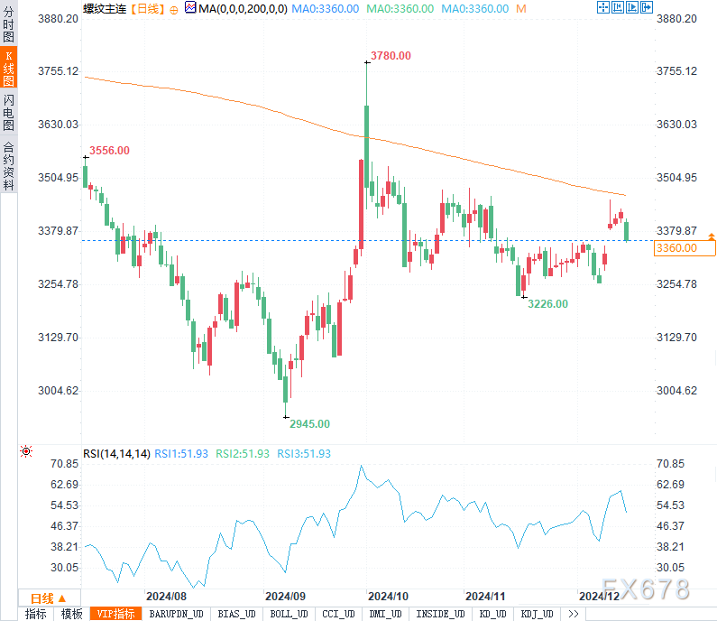 汇通财经APP讯——周五(12月13日),国内商品期货市场整体延续震荡态势,多数品种下行,但部分油脂类商品表现较为坚挺。数据显示,螺纹钢跌0.97%,沪银跌1.95%,豆粕跌0.98%,棕榈油涨0.91%,燃料油涨0.5%,菜粕跌1.23%,PVC跌0.20%,菜油跌1.61%,橡胶跌1.89%,热卷跌1.26%。市场情绪受到多方面因素影响,包括宏观政策信号、外盘动向及品种自身基本面变化。以下是各主要品种的具体分析。