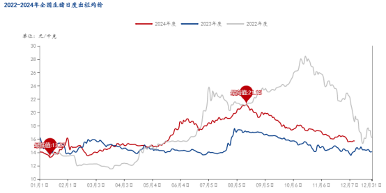 从价格来看,年内低点位于1月中旬,主要受到节后需求疲软的影响,终端消费较差,难以支撑行情,价格跌至年内低点13.27元/公斤;后随二育入场、北方供应阶段性断档等影响,猪价出现震荡上行行情,并在5月份出现超预期的增长,呈现明显的偏强运行趋势并延续至8月中旬,在8月达到年内高位21.15元/公斤,部分区域价格甚至达到22元/公斤,8月下旬市场出现供需错配现象,挺价情绪消退,价格呈震荡下行趋势并延续至今,截至2024年12月13日,全国外三元生猪出栏均价为15.68元/公斤,较昨日下调0.05元/公斤,最低价新疆14.90元/公斤,最高价四川16.70元/公斤。