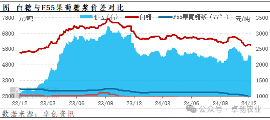 卓创资讯发布:中国白糖与果葡糖浆价差统计