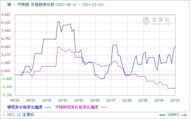 据生意社价差分析工具显示,镍和不锈钢价格基本相似,但最近镍价格波动相对较大,不锈钢价格相对平稳。