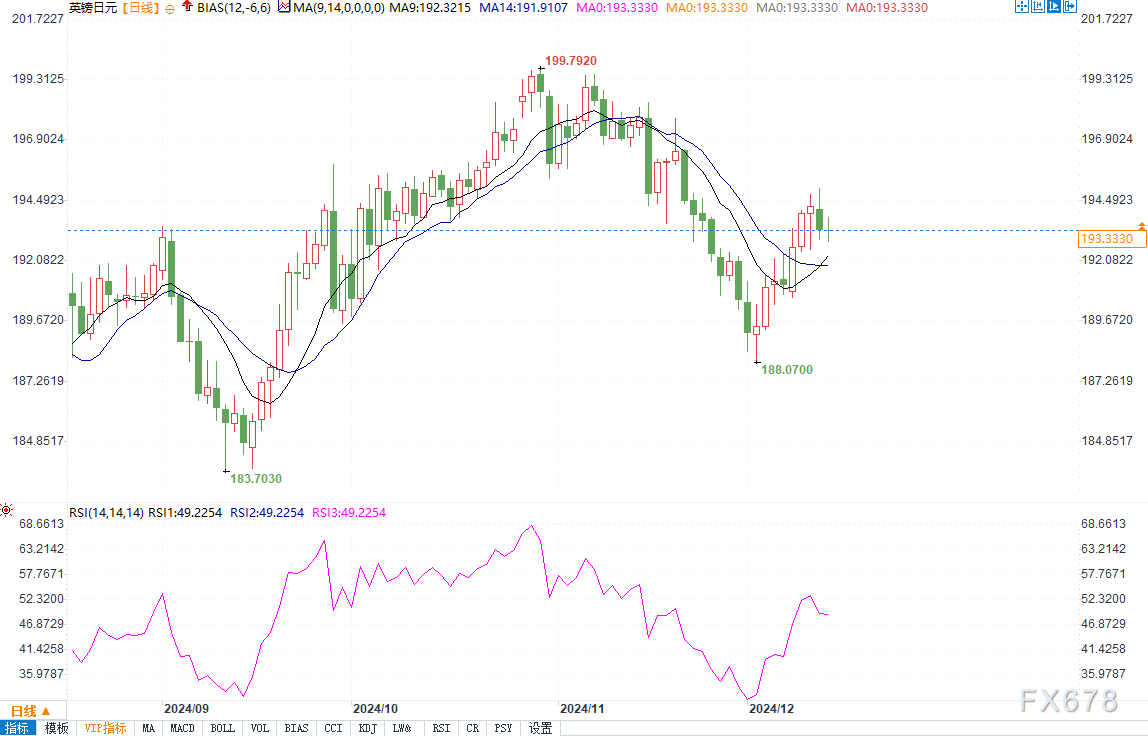 12月13日周五欧洲交易时段,英镑/日元汇率约为193.30,延续了下跌趋势。这一走势受到英国关键经济数据低于预期的推动。