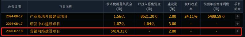 例如,同花顺显示,爱朋医疗在2020年7月公告的募投建设的“营销网络建设项目”承诺使用募集资金5414.31万元。但2024年都快结束了,公司还未投入一分钱。