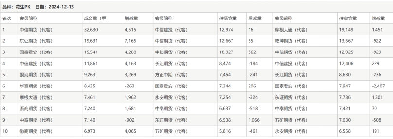 对此,郑楠也表示,摩根大通与乾坤席位持续看空本季花生价格,个人认为其将花生作为持仓组合中的空配品种,空配理由也基本从供需角度出发,种植面积增加、需求不佳。盘面主要多头为一部分产业资金,从前期交割情况看,也有油厂进行接货的情况。