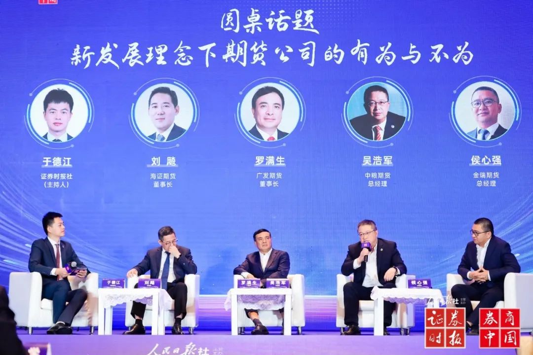 海证期货董事长刘飚、广发期货董事长罗满生、中粮期货总经理吴浩军、金瑞期货总经理侯心强四位行业领袖在圆桌论坛中分享了他们对于期货行业发展方向的独到见解,并就“新发展理念下期货公司的有为与不为”这一主题进行了深刻讨论。
