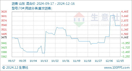 12月16日,生意社沥青基准价为3546.00元/吨,与本月初(3445.00元/吨)相比,上涨了2.93%。