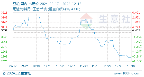 12月16日生意社豆粕基准价为2904.00元/吨
