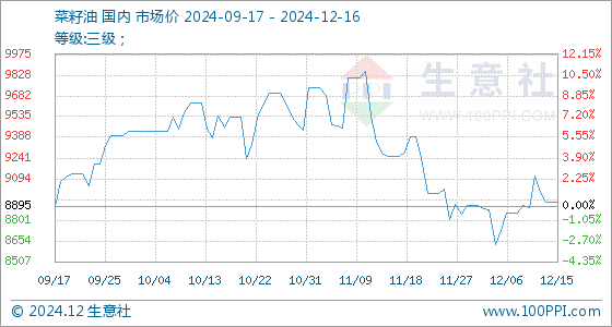 12月16日生意社菜籽油基准价为8926.67元/吨