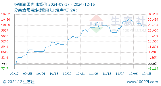 12月16日生意社棕榈油基准价为10078.00元/吨