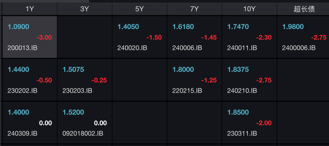 各期限国债收益率快速下行