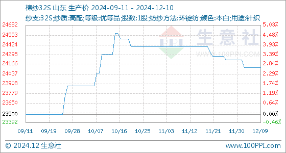 12月10日生意社棉纱32S基准价为24125.00元/吨