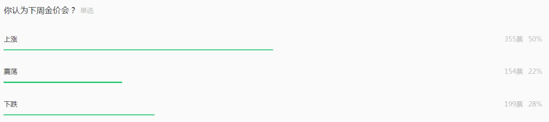 12月9日当周,伦敦金价格开盘2647.83美元/盎司,最高2726.21美元/盎司,最低2634.55美元/盎司,收盘2648.39美元/盎司。北京黄金经济发展研究中心调查显示,市场人士认为本周国际金价震荡偏空可能性较大。投票显示,有50%的读者看涨本周金价、22%看震荡、28%看空。