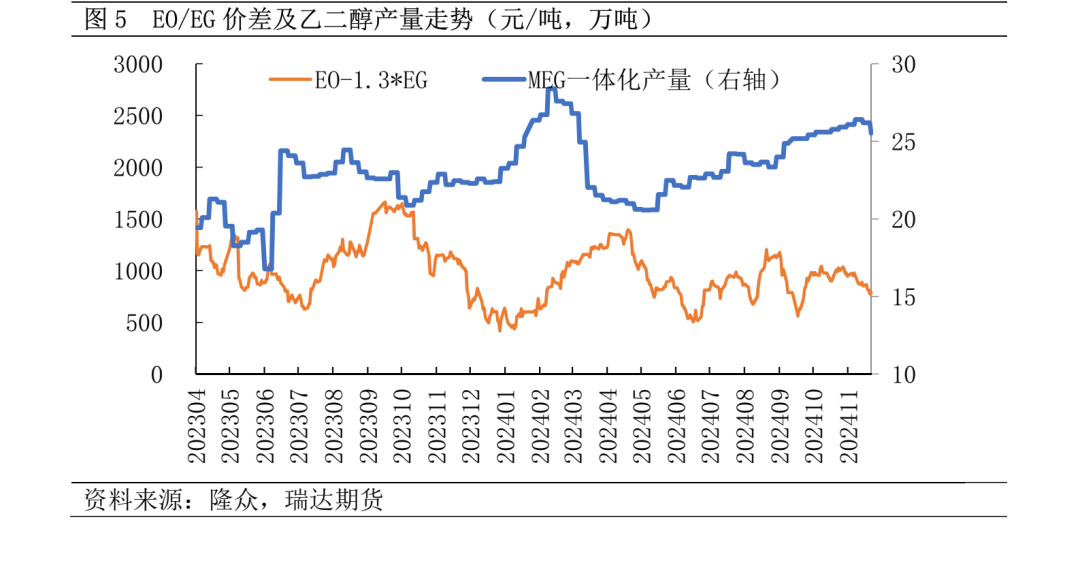 数据看点二:EO/EG价差压缩,乙二醇开工维持高位