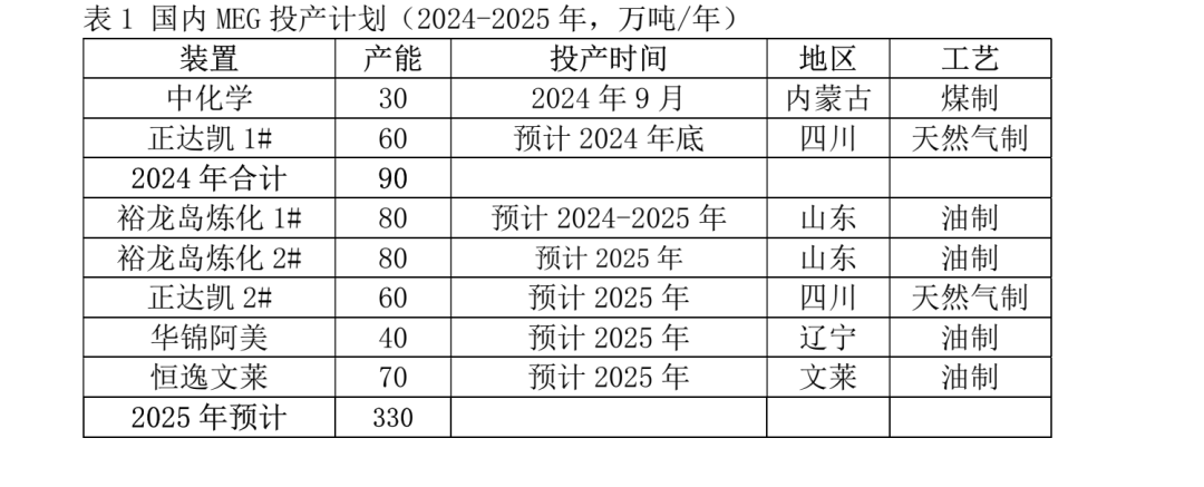 数据看点三:产能新增投产,预计乙二醇供应回升