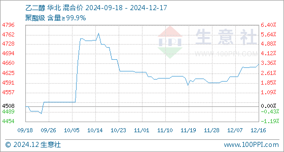 12月17日生意社乙二醇基准价为4658.33元/吨