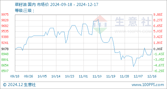 12月17日生意社菜籽油基准价为9090.00元/吨